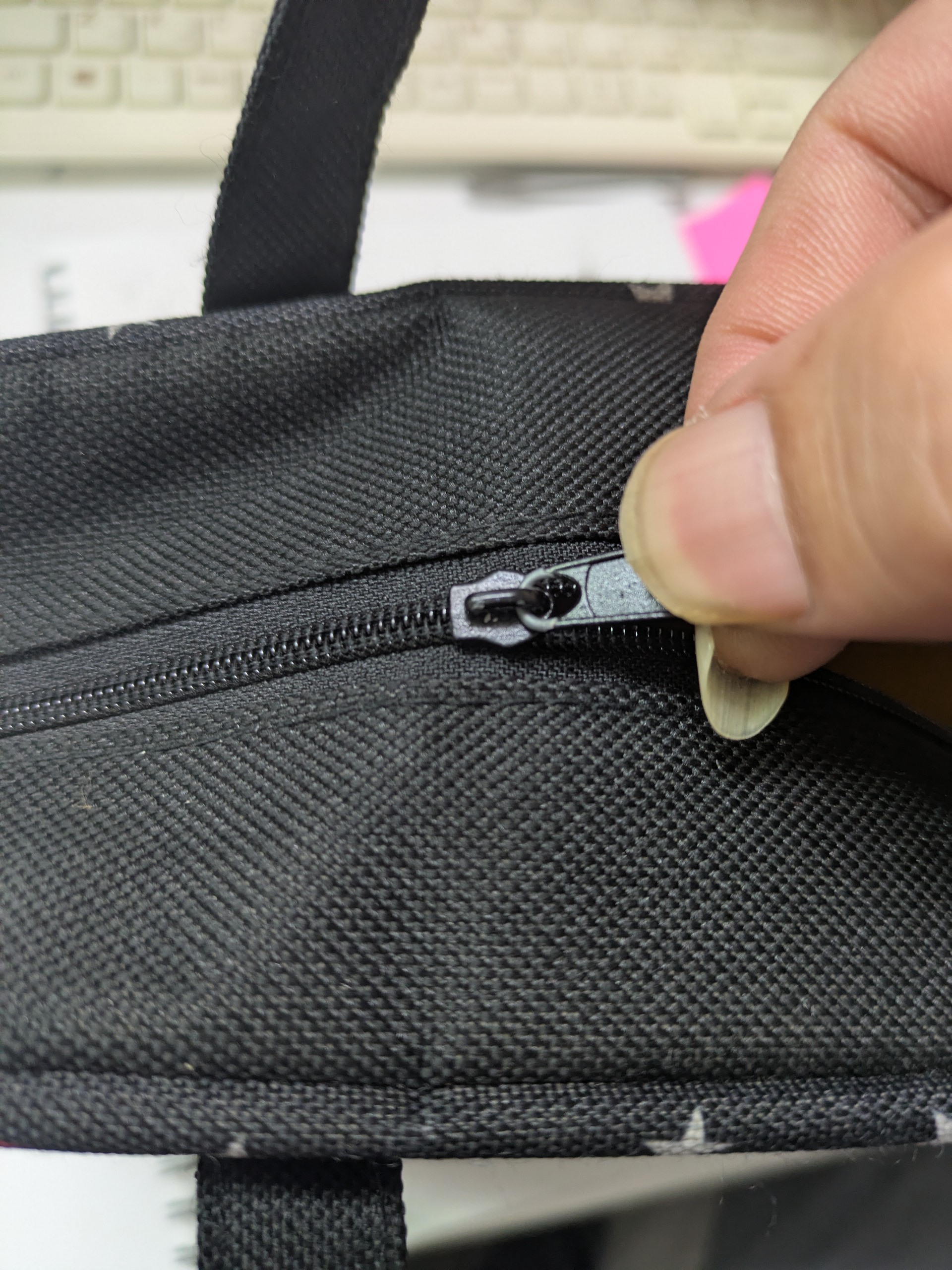 ファスナーのプラ―(引き手の部分) 確かに指先でつまむのが難しいと思われる方がいてもおかしくないのですが、初めて気づかされました。