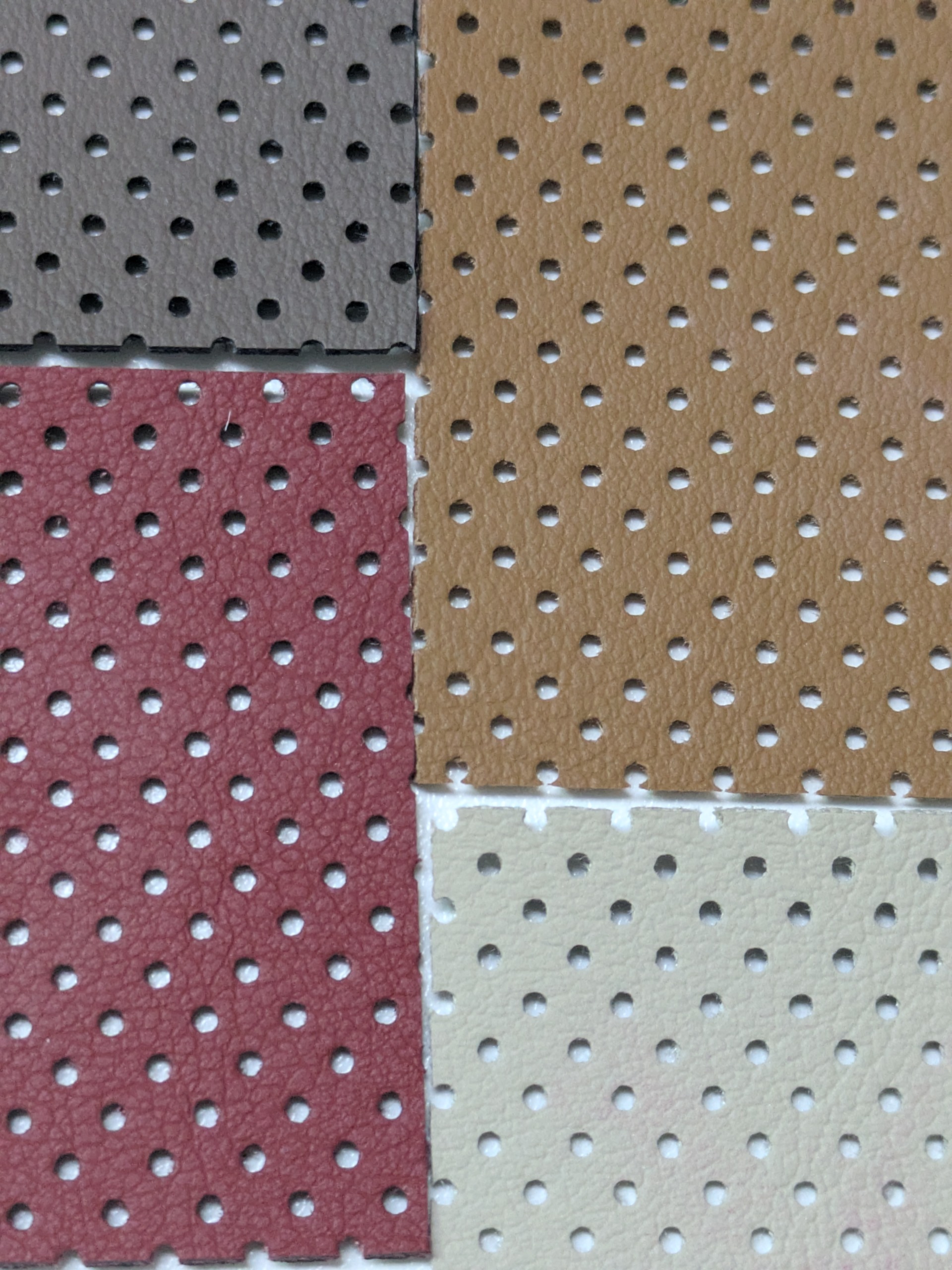 高級車のシートで背中の部分が ”穴の開いた生地” になっている物はこれです。これ以外にもあるでしょうが、これは実際車に使われているものと同じものです。